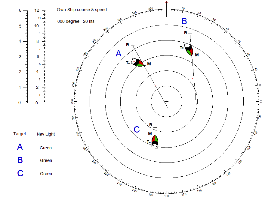 Determine a new course to steer so you pass ahead of target A with a CPA of 1.5 miles.